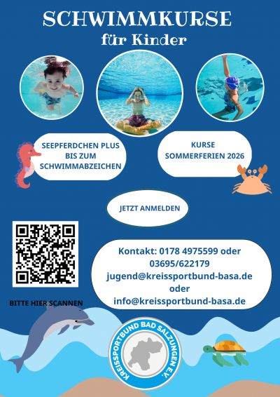 Achtung! Weiterführender Schwimmkurs für Kinder und Jugendliche, die bereits ein Seepferdchen-Abzeichen haben und 25m schwimmen können.